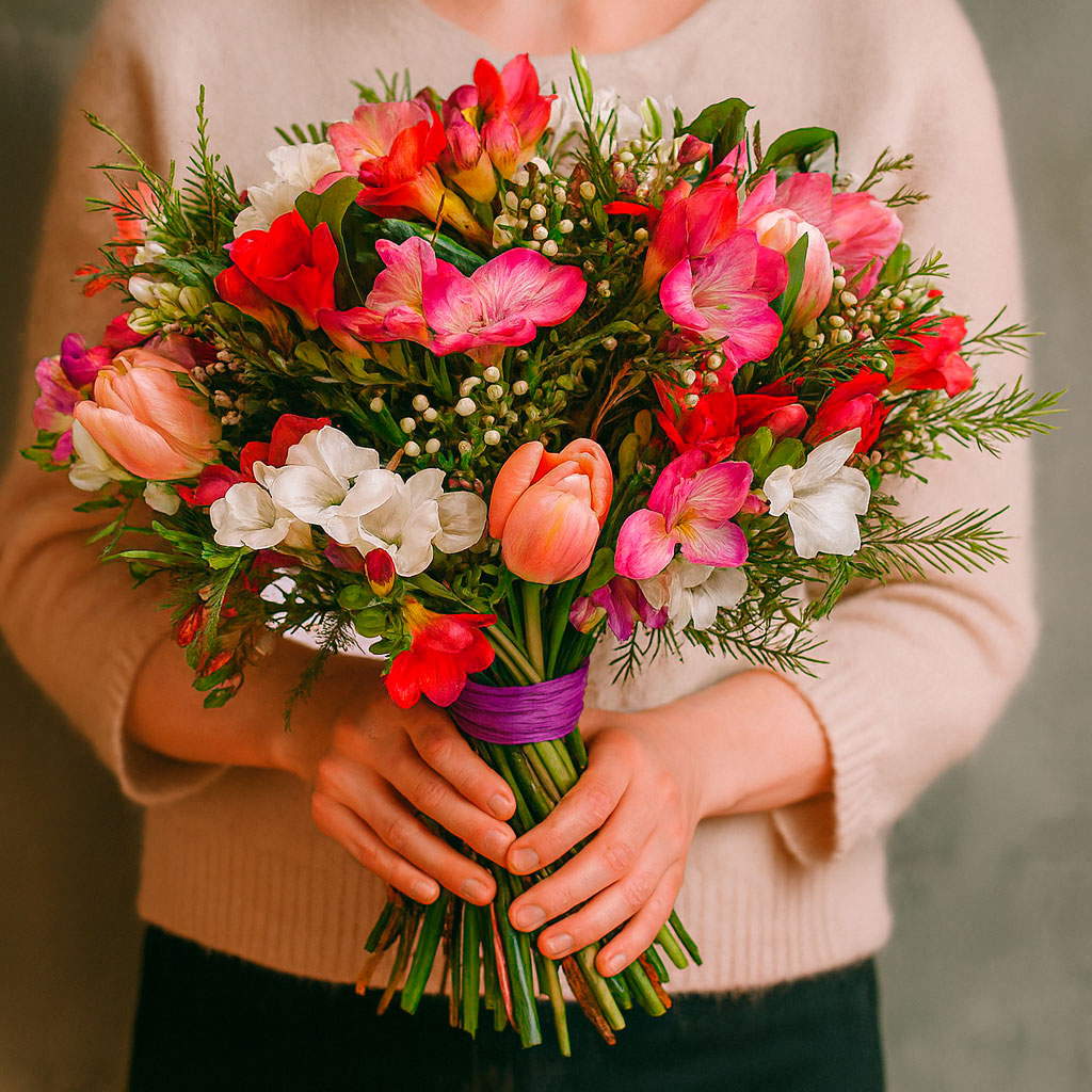Мы используем только свежие цветы, которые поступают в магазин напрямую с плантаций и оранжерей. Каждый букет собирается вручную опытными флористами.